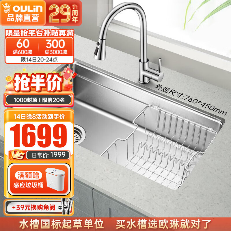 必看分析欧琳304不锈钢洗碗池评测:如何选择配抽拉龙头的厨房洗菜盆?