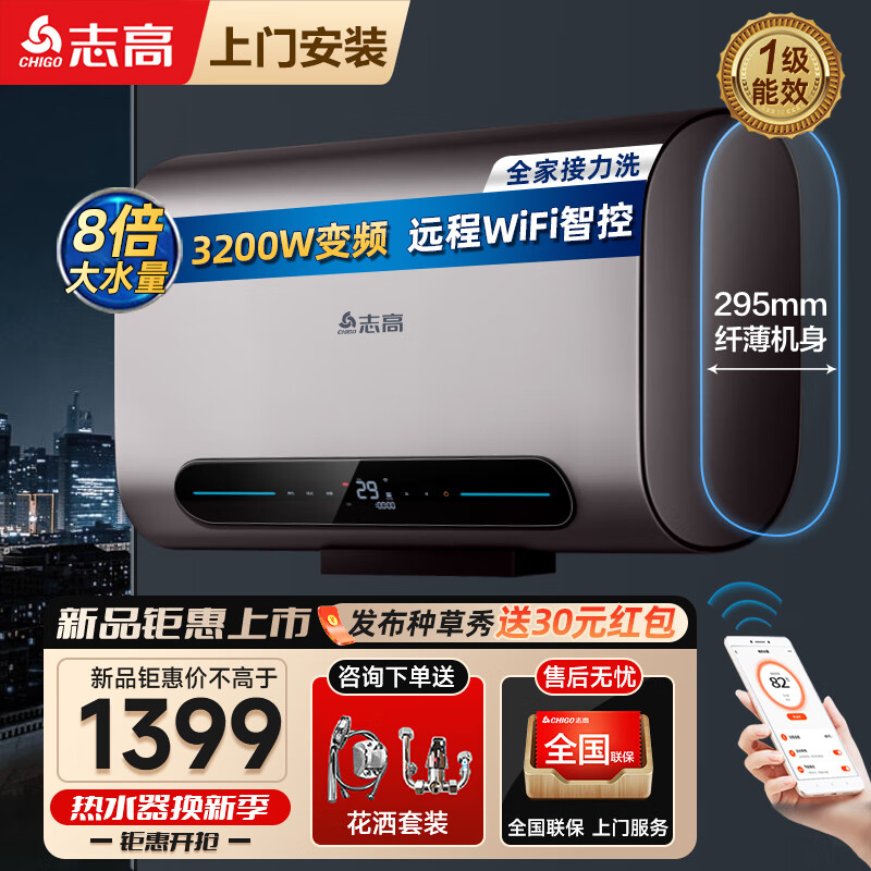1. 这台志高电热水器真的很给力,50升的水量足够家人使用,而且速热储水很方便。免费上门安装更是贴心,安装师傅很专业,装完让我一点也不用担心使用问题。