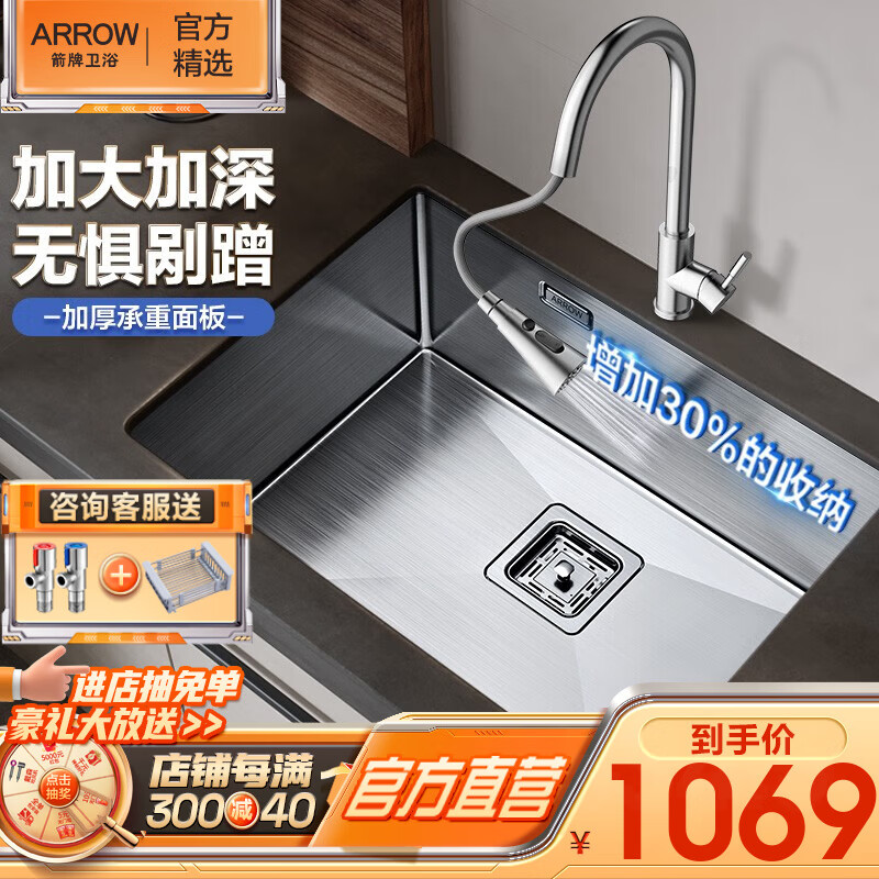 其次,我们来看一下这款水槽的设计。与传统水槽相比,ARROW的304不锈钢手工水槽把握了细节,考虑了厨房中各种使用情境,设计出多种规格,可以满足不同消费者的需求,且不同规格的水槽均保证了水流畅通,使得洗碗洗菜等操作更加方便。