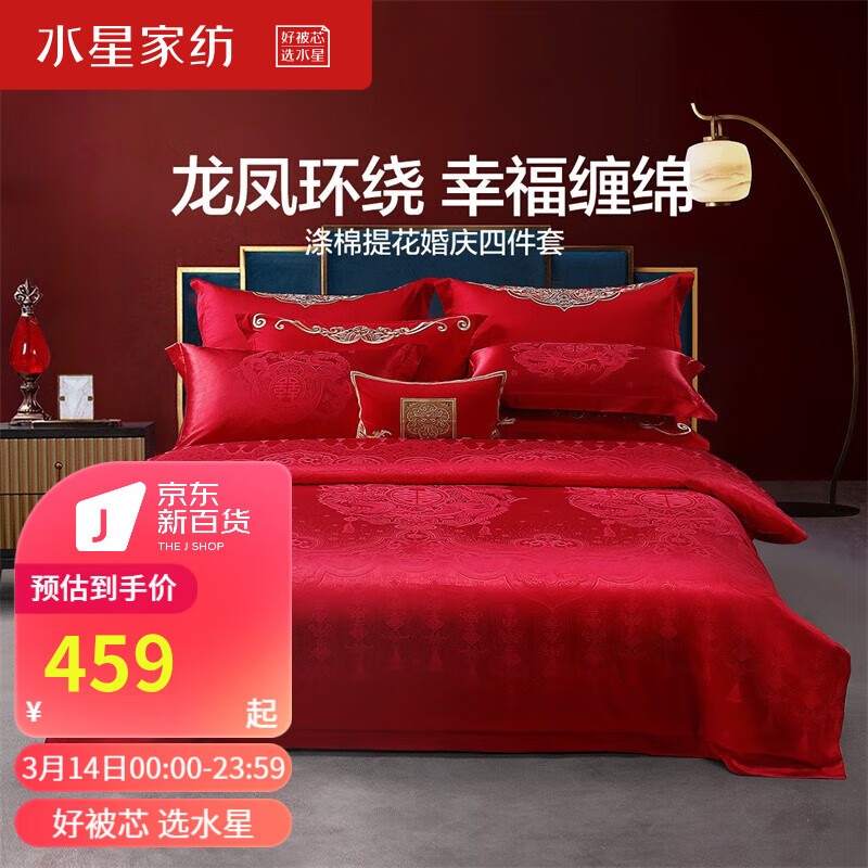 大家好,今天我来为大家分享一款来自水星家纺的婚庆四件套——凤凰烛飞。这款四件套适用于1.5米床,被芯尺寸为200*230cm。它不仅外观华丽,还是一款实用的床上用品,能够为您的卧室添加喜庆气氛。 首先,让我们来了解一下凤凰烛飞四件套的材质。这款四件套是由高质量的聚酯纤维制成的,具...